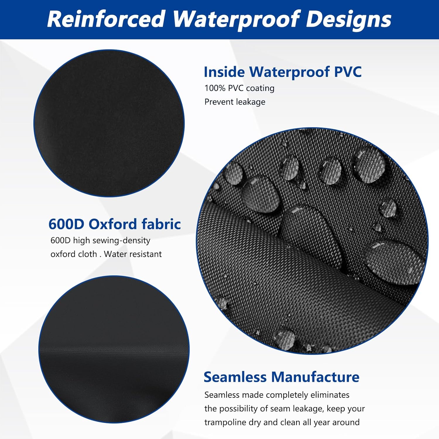 완벽하게 만들어졌습니다. 피트니스 트램폴린 커버는 튼튼한 방수 옥스포드 천으로 만들어졌으며 내구성이 뛰어나고 방수 기능이 있습니다. 매끄러운 구조로 솔기 누출 가능성이 완전히 제거되어 리바운더 트램폴린을 일년 내내 건조하고 깨끗하게 유지합니다.