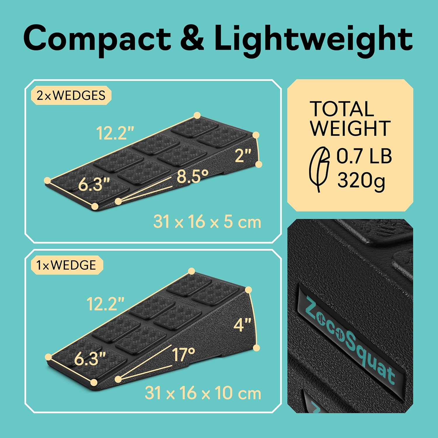 모듈식 각도 조정 – 이 수축 웨지 시스템에는 8.5° 블록 2개와 17° 블록 1개가 포함되어 있습니다. 양쪽 발뒤꿈치 아래에 겹치는 각도를 사용하여 스쿼트하거나 웨지를 정렬하여 종아리 스트레칭을 제어하기 위해 더 가파른 각도의 플랭크를 만듭니다.