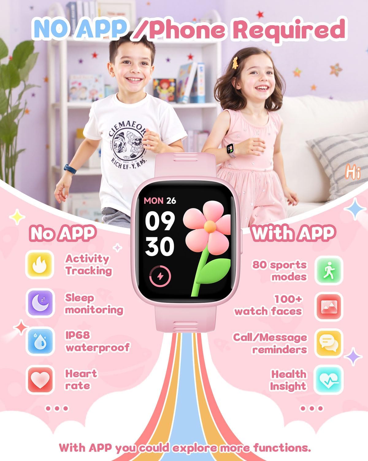 포괄적 인 체력과 건강은 실시간 심박수 모니터링 및 고급 수면에서 자녀의 복지를 도와줍니다. 시계는 수면 단계 (REM, Light, Deep)를 분석하여 수면 품질의 아이디어를 제공합니다. 참고 : 다음 수면은 정확한 결과를 얻으려면 3 시간 이상의 수면 및 장기 마모가 필요합니다.