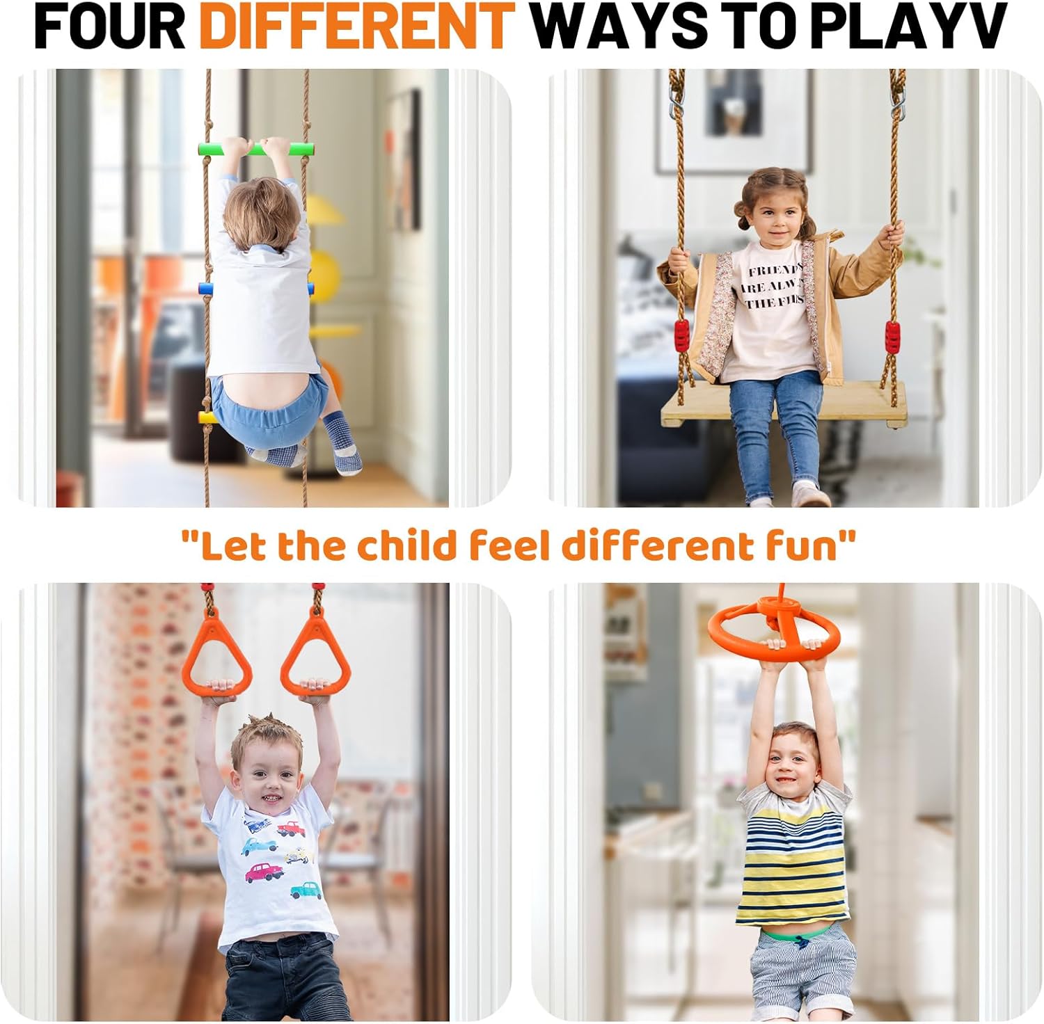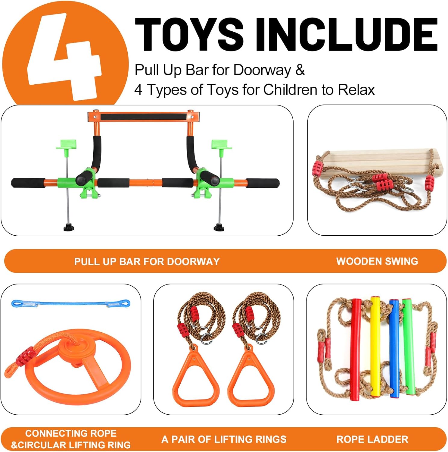 4 개의 액세서리 리듬 좌석, 로프, 체조 및 어린이를위한 회전 디스크-오피스 옵션이 포함되어 있습니다. 어린이들이 시스템의 균형을 잡고 사용하는 것이 이상적이며, 도어 트랙션은 신체의 상체를 만들 수 있습니다.