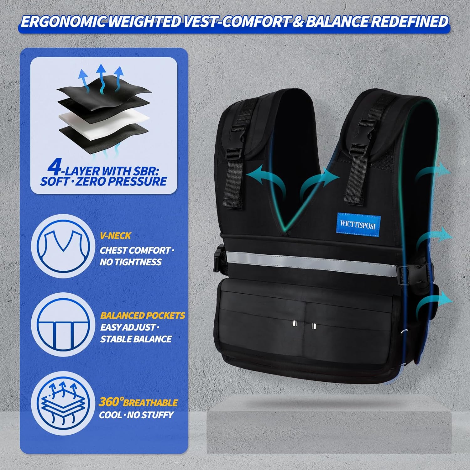 WICTISPOSI 조절 가능한 가중 조끼 | 훈련을 늘려라