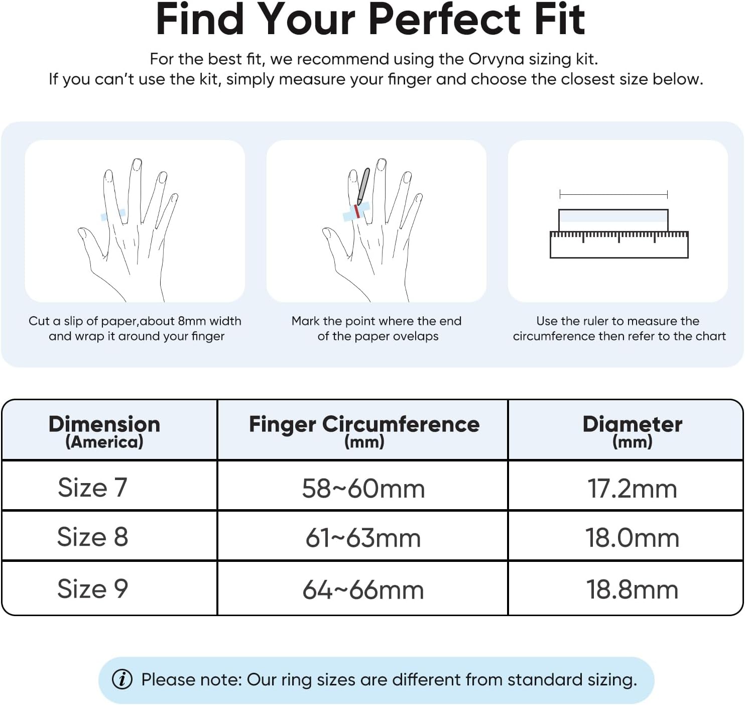 [Perfect Fit – Requires Sizing Kit First] Orvyna 링은 독특한 비표준 사이즈 시스템을 사용하여 완벽한 핏을 보장합니다. 정확한 건강 수치와 하루 종일 편안함을 위해 사이즈 키트를 먼저 구매하는 것이 좋습니다. 건강 관리에 관심이 있는 사람들을 위한 필수 피트니스 링