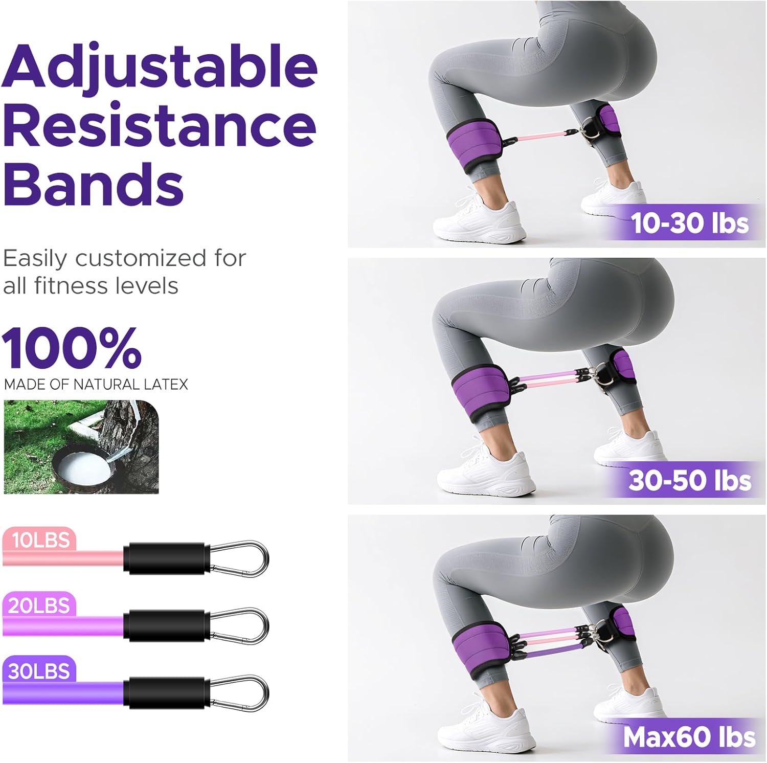 모든 레벨에 대한 다양한 저항. 이 키트에는 여러 가지 저항 도구가 함께 제공됩니다. 몽환적인 색상의 라텍스 저항 밴드 4개, 커프가 있는 발목 저항 밴드 3개는 다리, 엉덩이, 엉덩이를 포함한 다양한 근육 그룹을 작동하기 위한 다목적 솔루션을 제공합니다. 손 탄성 밴드 및 직물 저항 루프. 이러한 액세서리를 사용하면 유연성을 향상시키거나, 근력을 키우거나, 체력을 회복하는 등 루틴을 쉽게 확장할 수 있습니다.