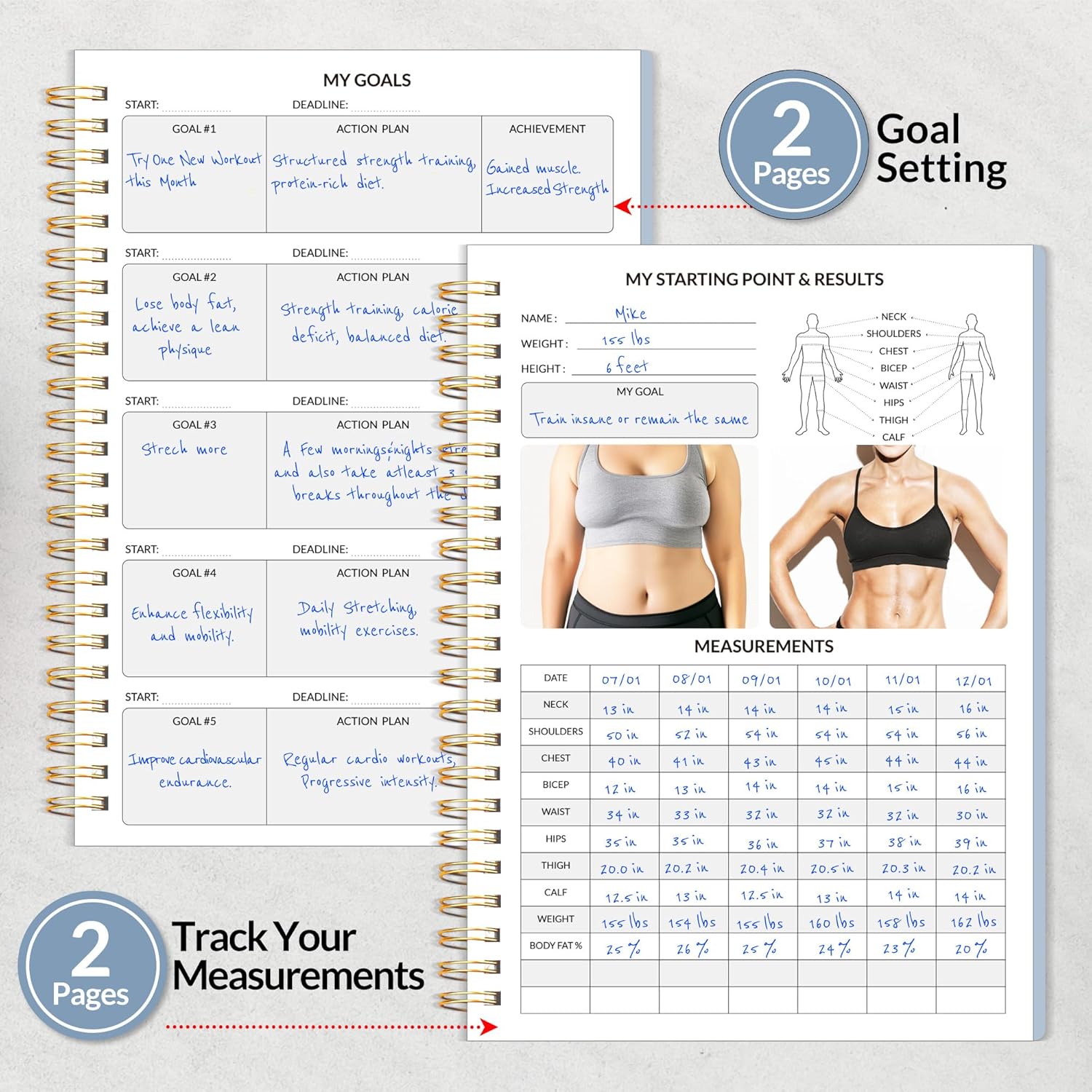 목표 설정 및 달성 – 최대 10개의 피트니스 목표를 설정하고 목표 달성 진행 상황을 추적하세요. 2026년의 종합 운동 로그는 목표를 기록하고 성과를 추적할 수 있는 공간을 제공하므로 2026년 피트니스 여정에 동기를 부여하고 집중할 수 있습니다.