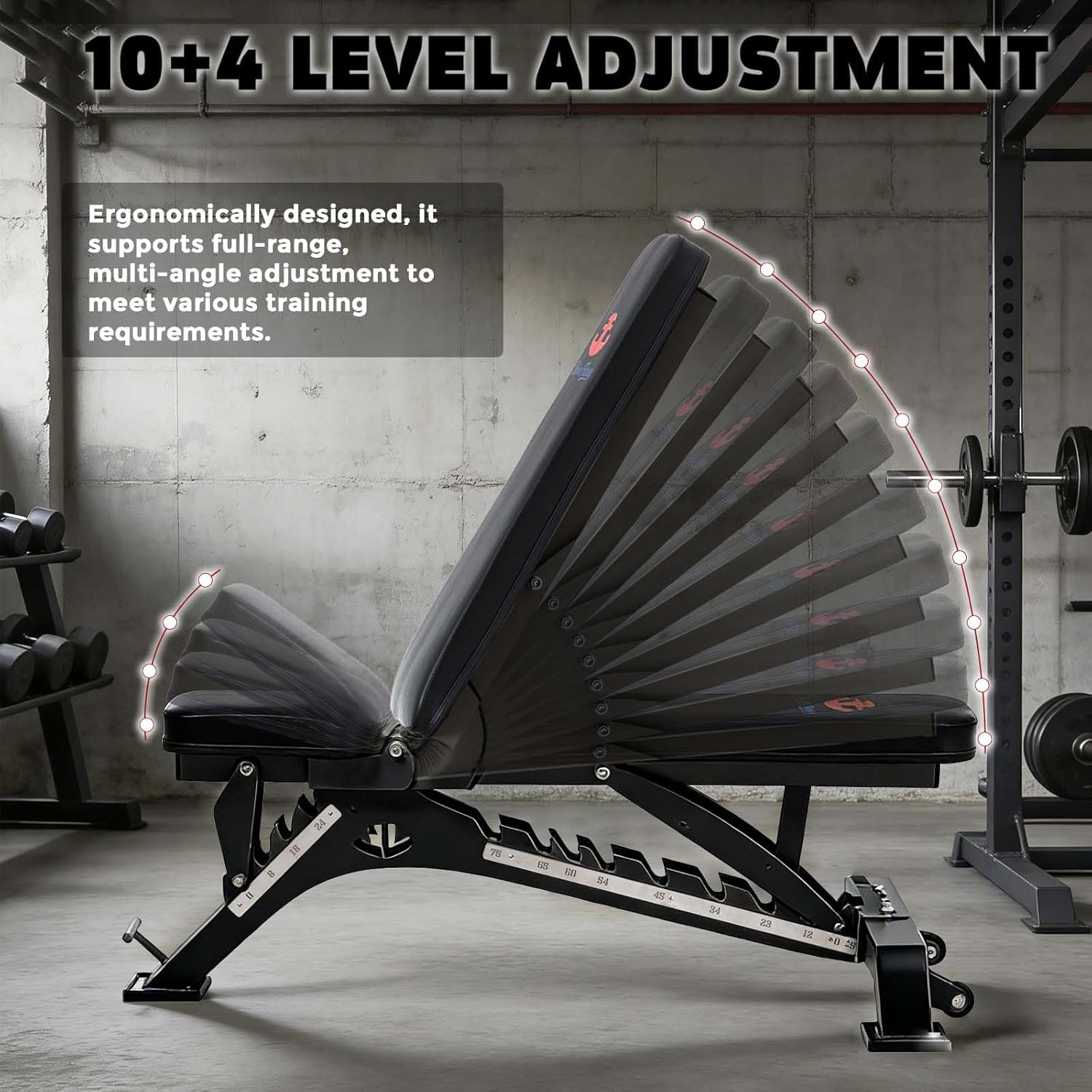 이 조정 가능한 웨이트 벤치는 빠르고 안전한 C자형 잠금 메커니즘 덕분에 빠르고 좌절 없이 조정할 수 있도록 설계되었습니다. 단 1초 만에 각도를 변경할 수 있습니다. 10가지 등받이 위치(-15° ~ 75° 기울기)와 3가지 조절 가능한 시트 각도(0° ~ 22°)를 제공하므로 모든 움직임에 맞춰 완벽한 모양으로 다이얼을 돌릴 수 있습니다. 이 다용도 운동 벤치는 가슴, 등, 어깨, 팔, 코어 운동을 포함한 전신 운동을 지원합니다. 성능과 내구성을 위해 제작된 이 체육관 벤치는 앞으로 수년 동안 일상적인 운동 루틴의 믿을 수 있는 일부가 될 것입니다.