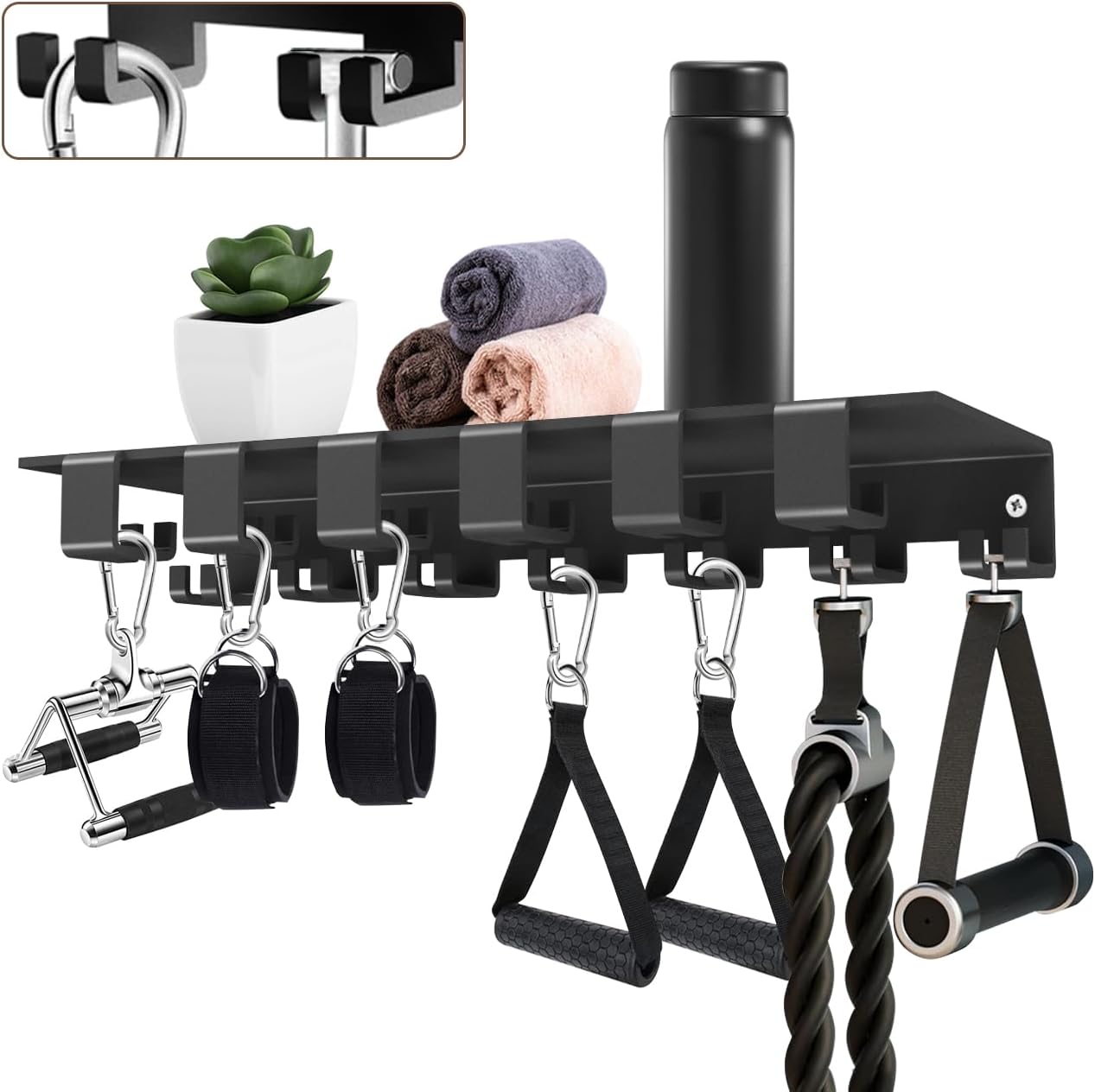 매우 강력한 저장 기회. 당사의 제품은 13개의 강력한 통합 후크를 나타내며 스포츠 장비를 위한 훌륭한 서스펜션 보관 솔루션을 제공합니다. 두꺼운 선반을 추가하면 다양한 물건을 보관할 수도 있습니다. 그 위에 수건이나 작은 화분을 설치해 운동에 더 많은 재미를 더할 수 있습니다.