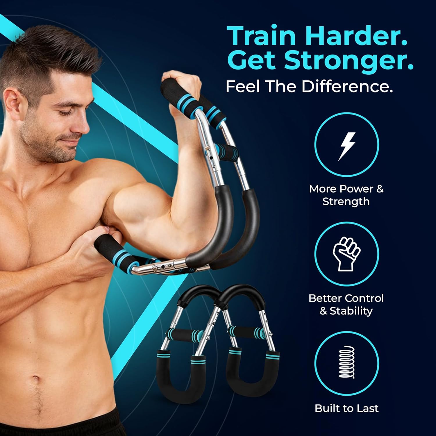 올인원 상체 운동. 파워 트위스터 디자인은 하나의 소형 트레이닝 바에서 팔, 가슴, 어깨 및 팔뚝을 대상으로 합니다. 가정 운동, 체육관 또는 여행에 이상적입니다. 부피가 큰 기계를 집중적인 상체 운동으로 교체하세요.