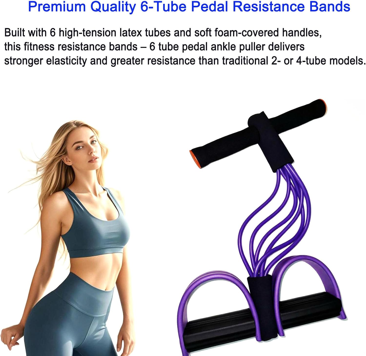 JQTEOYW PEDAL RESSICENCY 밴드 핸들, 운동을위한 체력 저항 관계, 6 파이프 자연 라텍스 운동을위한 6 파이프