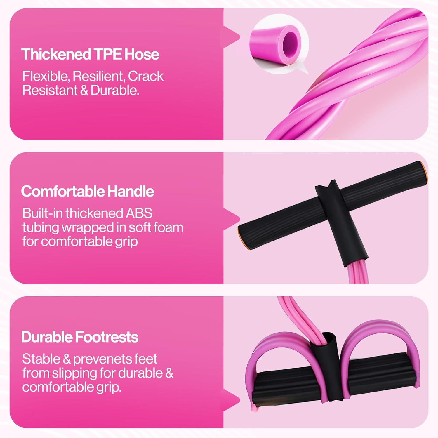 🏋️ [ERGONOMIC HANDLES & NON-SLIP FOOT PEDALS] 프리미엄 다목적 텐션 로프로 디자인된 이 제품은 부드러운 폼 그립과 내구성이 뛰어난 발이 특징으로 안정성과 편안함을 제공합니다. 미끄럼 방지 디자인으로 코어 운동, 팔 운동, 전신 운동 중에 안전하고 통제된 움직임이 가능합니다. 여성과 남성을 위한 필수 홈 체육관 장비입니다.