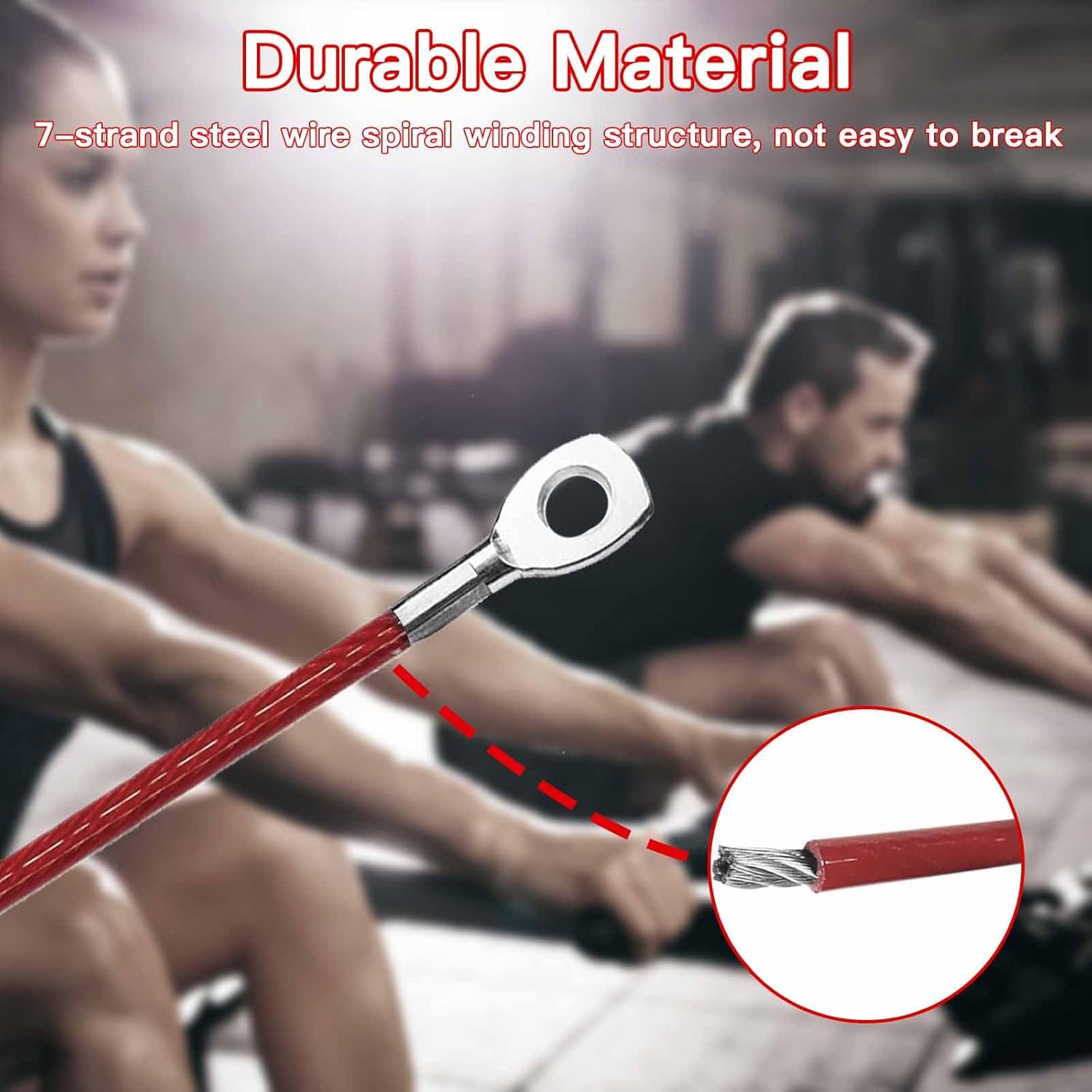 고강도 및 내구성이 뛰어난 디자인. 직경 0.2인치/5mm(갈색 빨간색 나일론 커버 포함), 무게 300lb. 다양한 길이 옵션으로 쉽게 착용할 수 있으며 다양한 피트니스 설정과 호환됩니다.