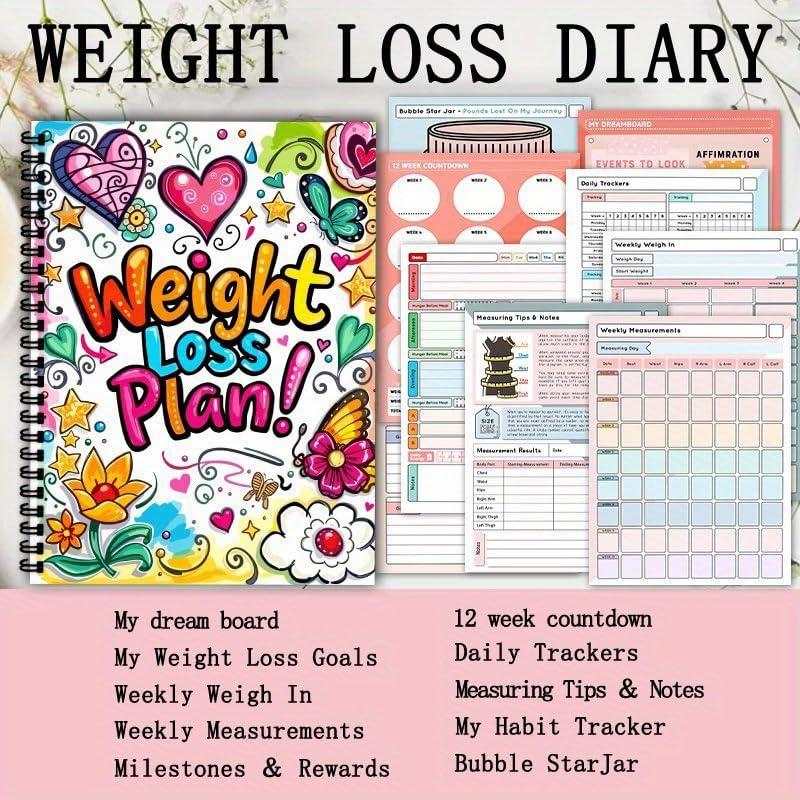 1Pc 104-Page A5 Weight Stationery Notepads with Fitness Equipment Design – Motivational Workout for Women & Men, Self-Discipline Guide, Healthy Eating Vibrant Cover