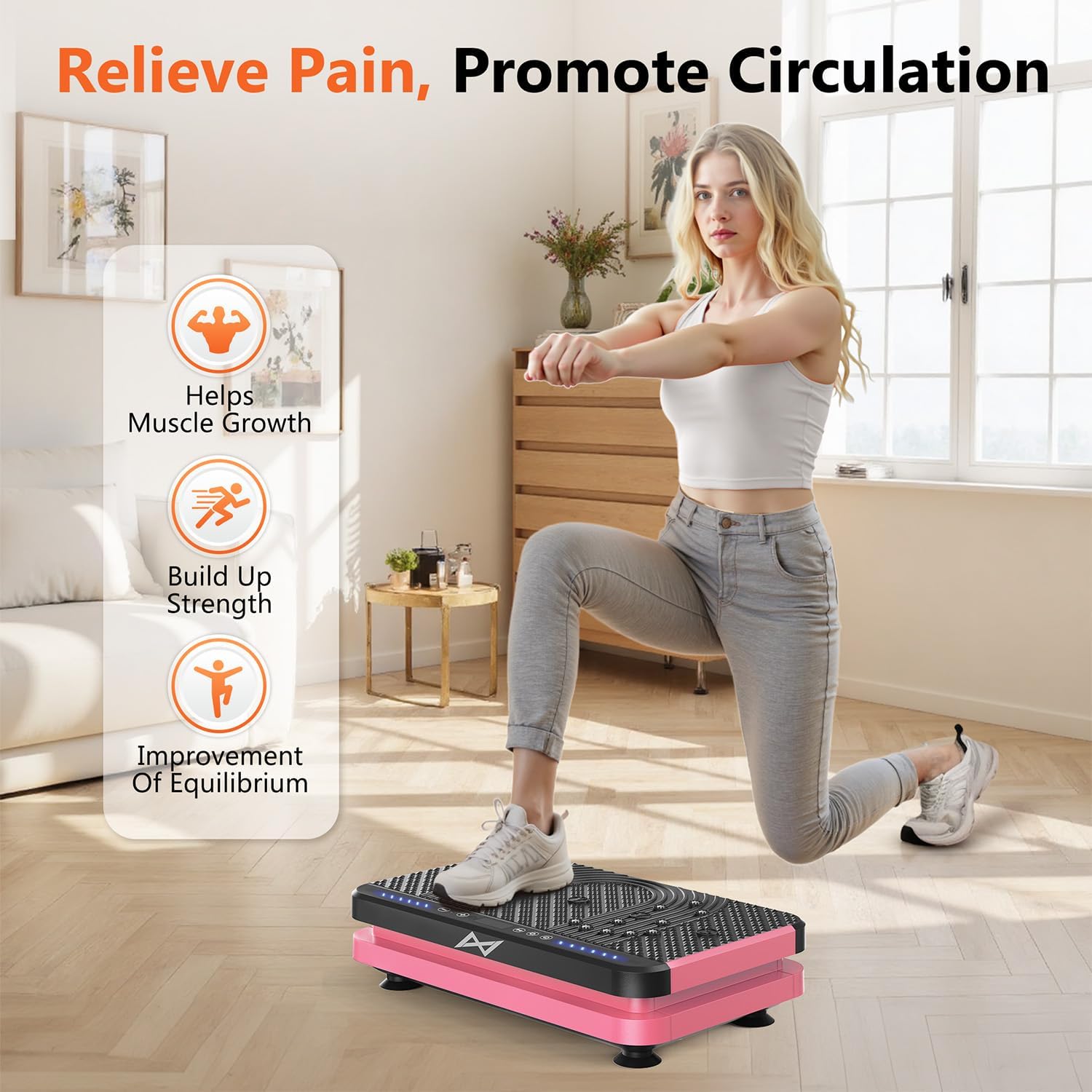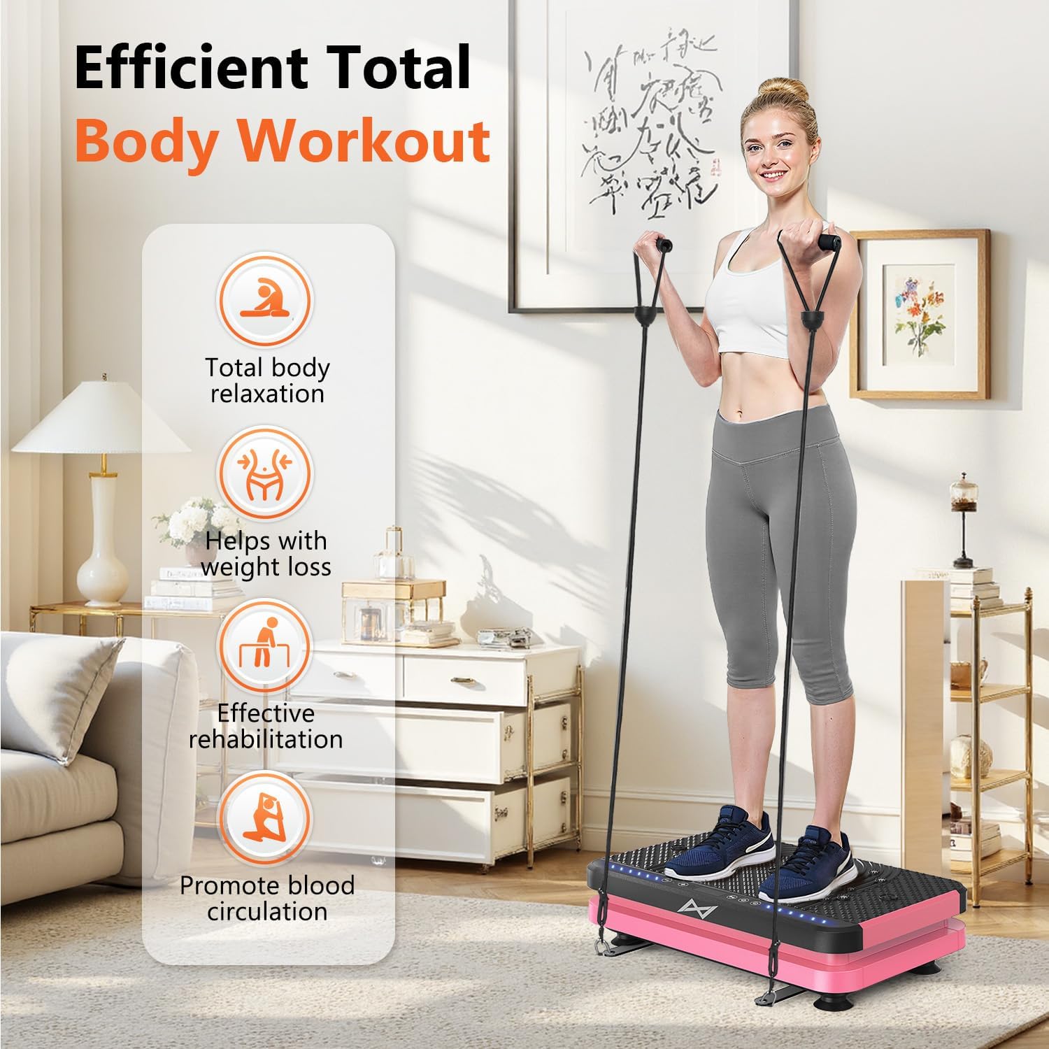 ✅ 풍부한 기능과 매우 효율적인 원격 제어. 조정 가능한 진동 속도(1~120)와 2개의 저항 훈련 밴드가 있어 상체와 하체를 동시에 훈련할 수 있습니다. 다양한 진동 운동을 시도할 수 있는 다양한 운동 모드를 제공합니다. 이 운동기구를 사용하면 하루 10분만에 규칙적인 운동 루틴을 완료할 수 있습니다. 당신이 얻게 될 것은 더 나은 체격과 향상된 신진대사, 증가된 골밀도, 완화 및 스트레스 수준 감소입니다.
