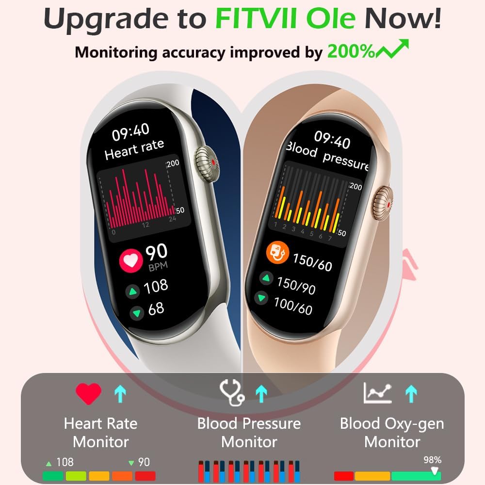 스마트 기능. FITVII Ole Fitness Watch는 여러 가지 스마트 기능을 제공합니다. 시계 얼굴을 개인화하고, 전화 및 메시지 알림을 받고, 전화를 찾고, 날씨를 확인하고, 날씨를 확인하고, 삽입하여 마시고 음악을 따르고 월경주기를 따르십시오.