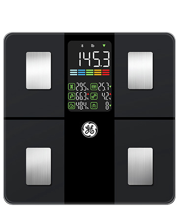 대형 화면 디스플레이. 5.3 “컬러 스크린, 즉시 표시 8 기본 측정 : 체중, BMI, 체지방, 근육량 및 신체 유형. 체중 규모는 안전합니다.