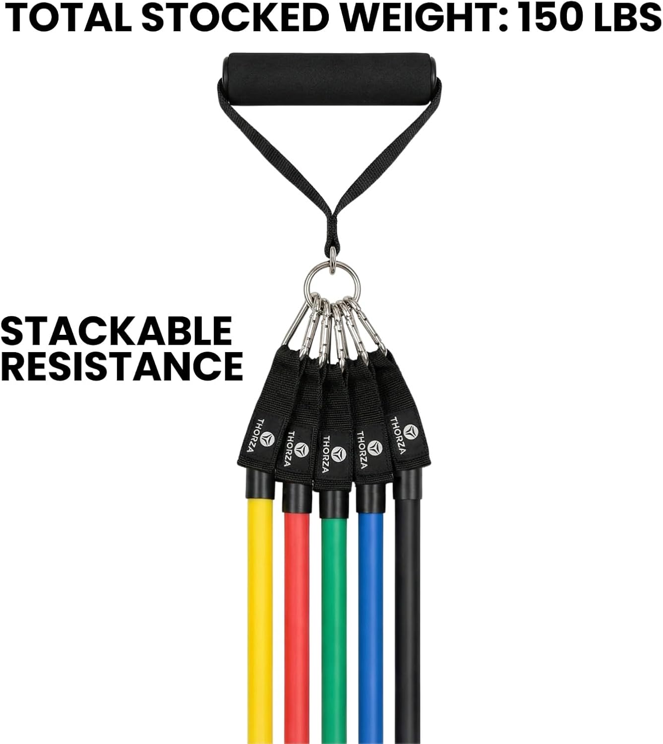 THORZA 11피스 전신 근력 트레이닝 탄성 밴드 운동 세트는 초경량부터 초무거까지 점진적인 색상 구분 수준을 갖춘 내구성이 뛰어난 라텍스 프리 TPE 튜브 저항 밴드 5개를 갖춘 최고의 올인원 피트니스 시스템입니다. 피트니스 밴드는 안전한 전신 운동을 위해 설계되었습니다. 탁월한 그립감을 위한 두 개의 부드러운 쿠션 핸들과 목표 다리 운동을 위한 두 개의 조절 가능한 발목 스트랩으로 강화된 이 다용도 키트에는 다양한 운동을 위한 견고한 도어 앵커가 포함되어 있어 전문적인 제어로 모든 근육 그룹을 훈련할 수 있습니다. 최고의 휴대성을 위한 컴팩트한 가방이 포함된 이 공간 절약형 앙상블은 집, 사무실, 야외 공간, 여행 등 어디에서나 체육관 수준의 결과를 제공하도록 완벽하게 설계되어 종합적인 피트니스를 정말 쉽게 만들어줍니다.