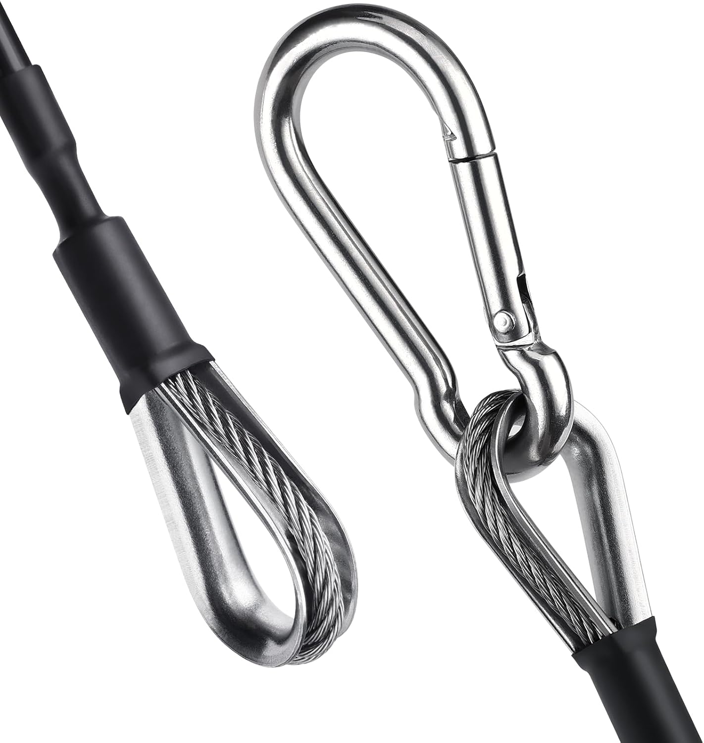 【포함 내용 및 사양】– 구매에는 견고한 체육관 연장 케이블 2개와 안전 카라비너 2개가 포함됩니다. 각 케이블의 길이는 약 51cm(20인치)이고 카라비너의 길이는 6cm(2.36인치)입니다. 완벽하게 맞도록 설계된 작은 구멍 직경은 20mm이며 30mm 체육관 카라비너 클립과 호환됩니다. 안전하고 균형 잡힌 작동을 위해 연장 케이블의 각 측면에 하나의 클램프를 사용하는 것이 이상적입니다.