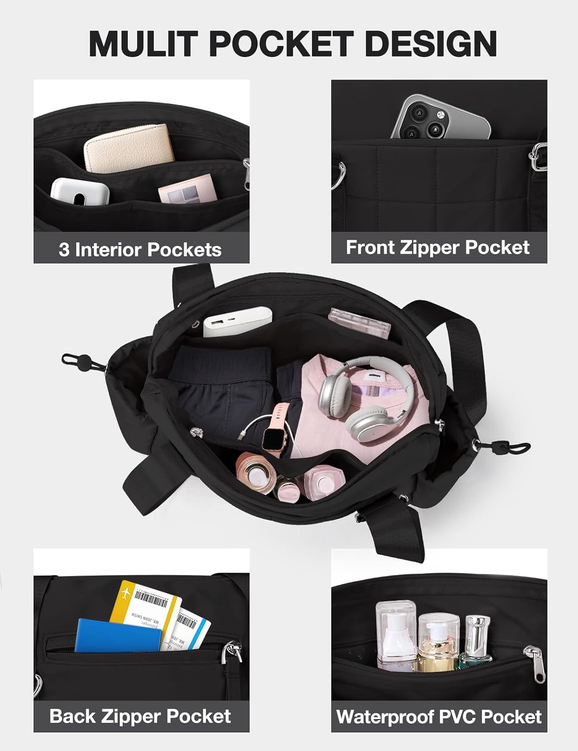 광범위하고 고도로 조직되었습니다. 3 개의 인테리어 포켓이있는 멀티 포켓 디자인, 전면 지퍼 포켓이있는 특수 사이드 프레임 포켓이 장착되어 있습니다. 화장실 용 특별 방수 PVC 포켓이 포함되어 있으면 필요한 모든 품목이 깔끔하게 분리되어 쉽게 접근 할 수 있습니다.
